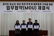 전국연합뉴스 조민준 기자 | 경기도미래세대재단은 12일 옛 경기도청사 신관 4층 대회의실에서 수원·성남·시흥시청소년청년재단과 ‘경기도 청년 정책 연계 및 협력체계 구축 업무협약’을 체결했다. 협약의 핵심은 ▲청년 분야 공동사업 기획 ▲정책·사업 정보 공유 ▲참여 기반 강화다. 4개 재단은 청년 일경험, 진로·취업, 사회참여를 잇는 연계형 프로그램을 공동 발굴하고, 공동 조사·연구와 정책 제안으로 협력 범위를 넓힐 계획이다. 참여기구와 네트워크 교류도 확대한다. 프로젝트와 캠페인을 함께 추진하고, 전문 인력과 강사, 공간, 콘텐츠, 운영 노하우 등 인적·물적 자원을 상호 연계한다. 협약 이후에는 정례 협의체를 운영해 공동 과제를 발굴하고 협력 사업을 단계적으로 확대한다. 김현삼 경기도미래세대재단 대표이사는 “청소년기 경험이 청년기 지원으로 자연스럽게 이어지도록 재단 간 협력을 본격화하는 출발점”이라며 “공동 과제를 꾸준히 발굴하고 협업 체계를 촘촘히 다져 정책이 현장에서 성과로 이어지게 하겠다”라고 말했다.