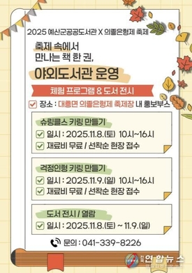 예산군 공공도서관, 의좋은형제축제 연계 '야외 도서관' 운영