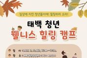 전국연합뉴스 권찬규 기자 | 태백시는 태백 청년창창센터에서 지역 청년들의 심리적 회복과 건강한 삶의 균형을 지원하기 위해 ‘청년 웰니스 힐링 캠프’ 참가자를 모집한다고 밝혔다. 이번 캠프는 11월 22일 오후 2시부터 5시 20분까지 태백 청년창창센터(태백시 계산1길 15)에서 진행되며, 태백시에 주소를 두거나 생활근거지가 있는 18세 이상 49세 이하 청년 20명 내외를 대상으로 한다. 일상에 지친 청년들을 위하여 △ 사상체질 테스트를 통한 웰니스 한방 체험 △ 색채 심리 검사에 따른 맞춤형 웰니스 컨설팅 △ 개인 맞춤형 아로마 오일 처방 등 다양한 프로그램이 준비되어 있으며, 청년들은 본인의 취향에 맞춰 선택적으로 프로그램 체험이 가능하다. 참가 신청은 네이버폼 또는 포스터의 QR코드를 통한 온라인으로 접수가 가능하며 참가자는 선착순 20명 내외로 선정될 예정으로, 자세한 사항은 태백시청 홈페이지 소통참여 ' 시민공지신청 ' 일반공지신청 탭에서 확인할 수 있다. 경제진흥원 관계자는 “청년의 역량강화와 사회참여 촉진 등 다양한 청년 활동 지원을 위해 마련된 청년센터가 올해 10월 강원특별자치도 경
