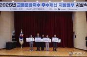 전국연합뉴스 유근택 기자 | 원주시는 16일 경북 상주시 한국교통안전공단 교통안전체험교육센터에서 열린 ‘2025년 교통문화지수 우수 및 개선 지자체 시상식’에서 국토교통부 장관상을 수상했다. 시는 인구 30만 이상 시 부문 1위를 차지하며 7년 연속 수상이라는 쾌거를 달성했다. 국토교통부와 한국교통안전공단이 주관하는 교통문화지수 실태조사는 매년 전국 229개 시군구를 대상으로 운전행태·보행행태·교통안전 등 3개 조사 항목에 대한 지표를 평가해 국민의 교통 안전의식 및 교통문화 수준을 객관적으로 측정하는 조사다. 2025년 조사에서 원주시는 총 91.58점을 기록하며 전국 평균인 81.34점을 크게 웃돌았다. 특히 이륜차 승차자 안전모 착용률 100%(평균 97.16%), 횡단보도 신호 준수율 100%(평균 92.80%), 횡단보도 횡단 중 스마트기기 미사용 준수율 99.73%(평균 85.86%) 등 교통법규 준수율이 전국 평균보다 높은 수준으로 나타났다. 원주시 관계자는 “앞으로도 체계적인 교통안전 대책 마련과 교통안전 인식 개선 등을 통해 안전제일 도시 원주를 만드는 데 최선을 다하겠다”라고 말했