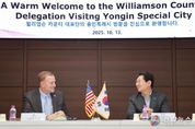 전국연합뉴스 박남호 기자 | 이상일 용인특례시장이 13일 용인의 자매도시인 미국 텍사스주 윌리엄슨카운티의 대표단과 만나 양 도시의 발전을 위한 협력 방안을 논의했다. 이날 시청 접견실에서 이 시장은 스티븐 스넬(Steven Snell) 윌리엄슨카운티장과 러스 볼즈(Russ Boles) 윌리엄슨카운티 커미셔너, 데이브 포터(Dave Porter) 윌리엄슨카운티 경제개발파트너십 전무이사를 만나 경제와 산업, 교육 등 다양한 분야에 대해 의견을 나눴다. 이날 이상일 시장을 만난 스티븐 스넬 윌리엄슨카운티장은 전임자인 빌 그래벨(Bill Gravell) 윌리엄슨카운티장에 이어 지난 4월 신임 윌리엄슨카운티장으로 취임했다. 이상일 시장은 “양 도시는 도시 이름을 붙인 명예도로명을 부여하면서 우정을 쌓고, 교류협력을 활발하게 하고 있다”며 “윌리엄슨카운티 대표단과 텍사스 주립대학교 관계자들이 용인에 있는 단국대학교 관계자를 만나 협력관계 구축에 대한 논의를 진행하는 것으로 알고 있는 데 양 도시에 있는 대학이 교류하는 것은 매우 뜻 깊은 일”이라고 말했다. 이 시장은 “윌리엄슨카운티에는 첨단산업 관련 기업들의