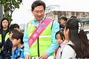전국연합뉴스 박남호 기자 | 이상일 용인특례시장은 14일 아침 처인구 고림로에 위치한 고진초등학교 정문 횡단보도에서 어린이들의 안전한 통학환경 조성을 위한 교통지도 봉사활동에 참여하고 학교 주변 통학로를 점검했다. 이상일 시장은 서경란 고진초 교장, 녹색어머니회·학부모회·학생 등 60여명과 함께 등굣길 어린이들이 안전하게 길을 건널 수 있도록 돕고 운전자들에게 ‘어린이보호구역 내 서행’을 당부하는 교통안전 캠페인을 펼쳤다. 이 시장은 통학로 현장을 둘러보며 ▲고림고 유리방음벽 모서리 보호대 설치 ▲고림고~힐스테이트용인고진역 구간 횡단보도 너비 확대 ▲해당 구간 도로의 물고임 등 도로시설물 일제정비 ▲통학로 낙엽제거(보행자 미끄러짐 방지) 등의 추가 건의사항을 꼼꼼히 챙겼다. 이상일 시장은 녹색어머니회와 학부모회 회원들에게 “아이들의 등굣길을 지켜주셔서 감사 드린다”며 “학생들이 마음 놓고 통학할 수 있는 안전한 도시 환경을 만드는 것이 무엇보다 중요한 만큼 시에서도 현장을 잘 살펴 필요한 조치를 신속히 진행하겠다”고 말했다. 이 시장은 10월과 11월에도 용인신촌초, 백현초, 구갈초, 신월초, 함박