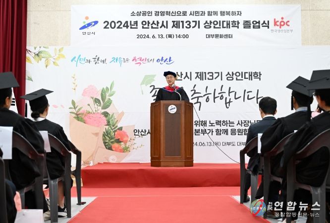 전국연합뉴스 이명후 기자 | 안산시는 이민근 시장이 지난 13일 대부문화센터에서 개최된 제13기 상인대학 졸업식에 참석해 축하 인사를 전했다고 14일 밝혔다.