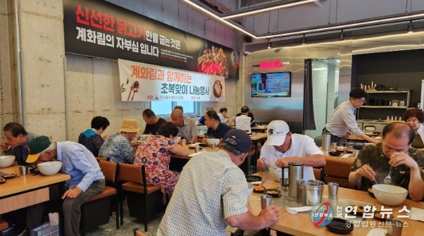 전국연합뉴스 최성용 기자 | 익산시 음식식품교육문화원의 계화림이 무더위가 본격적으로 시작되는 초복을 앞두고 12일 삼계탕 한 그릇 나눔 봉사를 펼쳤다.