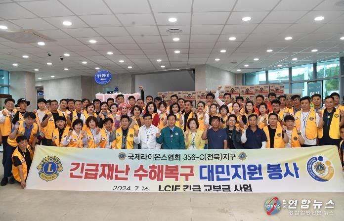 전국연합뉴스 최성용 기자 | 국제라이온스협회 356-C(전북)지구가 집중호우 피해를 입은 완주군을 위해 500여 만 원 상당의 생필품을 전달하고, 현장 봉사활동을 지원했다.