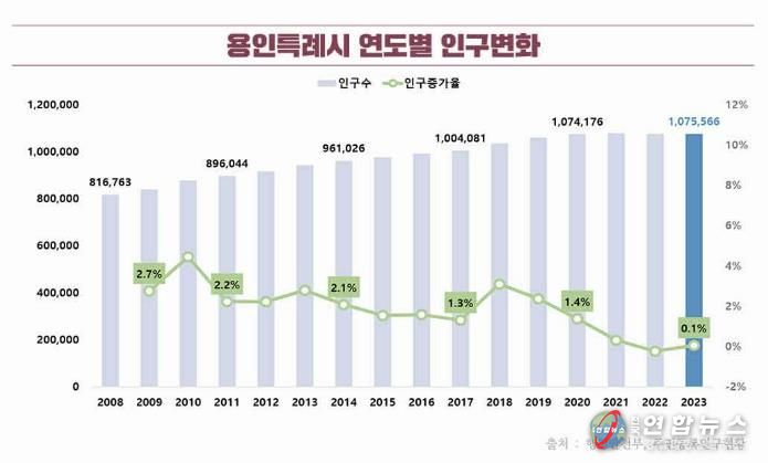 전국연합뉴스 배주현 기자 | 지난 2023년 말 기준 용인특례시로 성남시(9821명), 수원시(8734명)를 비롯한 전국 지방자치단체에서 전입온 시민은 12만 5801명이고, 용인에서 수원시(1만 217명), 성남시(7904명) 등 다른 지자체로 빠진 시민은 12만 4807명이었다. 용인의 순유입 인구 994명이 늘어난 셈이다.