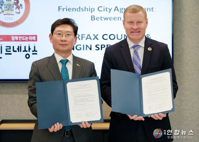 전국연합뉴스 배주현 기자 | 용인특례시와 미국 버지니아주 페어팩스 카운티가 현지시각 13일 오전 우호결연 협약을 체결했다.