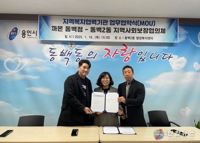 까몬 동백점에 지역복지 협력기관 인증 현판을 전달한 이번 협약식에서 이수현 동장은 “이번 협약을 통해 동백2동의 복지 서비스가 더욱 강화될 것”이라며 감사의 뜻을 전했다. 동백2동 지역사회보장협의체는 앞으로도 다양한 복지 협력 사업을 통해 주민 복지 향상에 기여할 계획이다.