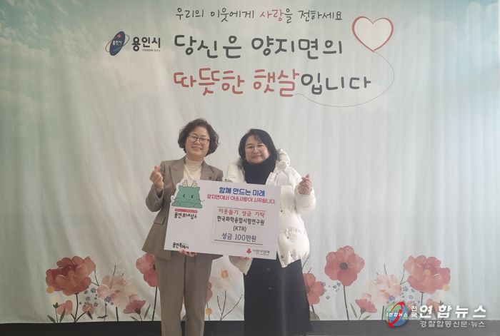 (재)한국화학융합시험연구원(KTR) 용인청사는 23일 양지면 관내 어려운 이웃을 위해 100만 원을 후원했다. 연구원은 매년 지속적인 나눔을 실천하며 지역사회에 따뜻한 마음을 전하고 있다.