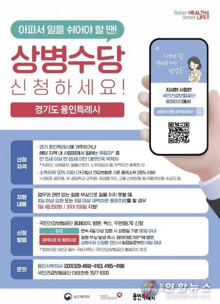 전국연합뉴스 배주현 기자 | 용인특례시는 지역 내 상병수당 지급 건수가 지원 범위 확대 시행 후 대폭 늘어 월 평균 72% 상승한 것으로 나타났다고 6일 밝혔다.