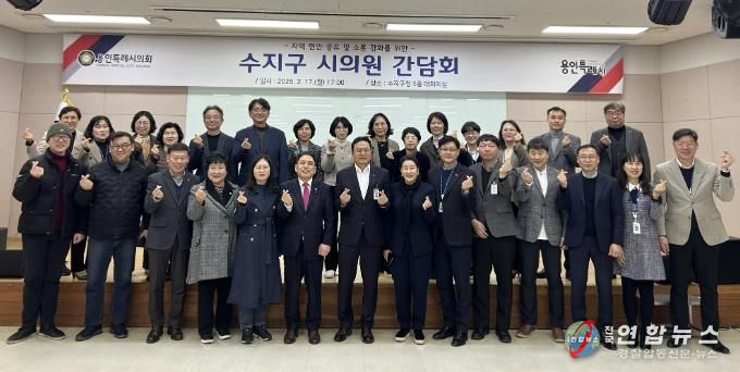 전국연합뉴스 배주현 기자 | 용인특례시 수지구는 17일 수지구청 5층 대회의실에서 지역 시의원들과 간담회를 열어 2025년 주요 사업 방향을 공유하고 지역 현안 해결을 위한 협력 방안을 논의했다고 18일 밝혔다.
