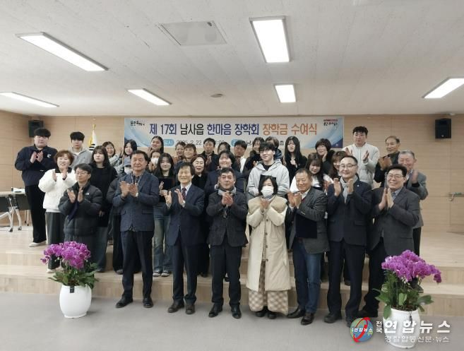 남사읍 한마음장학회는 지난 22일 남사읍 행정복지센터 대회의실에서 장학금 수여식을 열고, 지역 내 대학생 15명에게 100만 원씩 총 1,500만 원의 장학금을 전달했다.