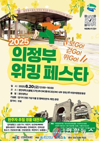 전국연합뉴스 박점규 기자 | 의정부문화재단이 주최하고 경민대학교와 뉴시스가 주관하며, 의정부성모병원과 의정부도시공사 등이 후원하는 걷기 행사 '의정부 워킹페스타! 보Go! 걷Go! 뛰Go!'가 오는 6월 20일 오후 12시부터 경기 의정부시 캠프 레드클라우드(CRC) 일대에서 개최된다.