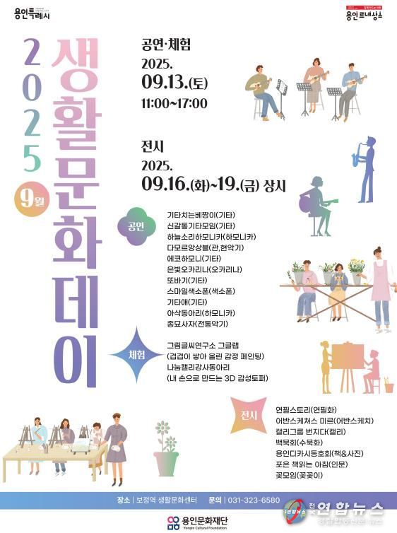 전국연합뉴스 박남호 기자 | 용인문화재단은 오는 9월 13일 보정역 생활문화센터에서 ‘9월 생활문화데이’를 개최한다고 밝혔다.