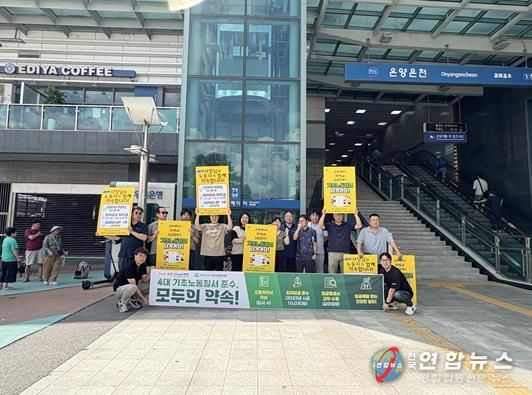 전국연합뉴스 김용태 기자 | 아산시노사민정협의회는 8월 29일 온양온천역 광장 일대에서 기초노동질서 확립을 위한 캠페인을 실시했다.