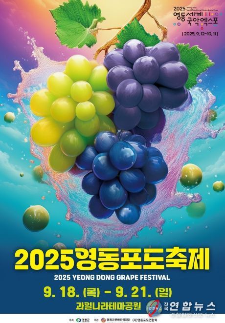 전국연합뉴스 이동수 기자 | 충북 영동군과 영동군문화관광재단은 오는 18일부터 21일까지 과일나라테마공원 일원에서 2025 영동포도축제를 개최한다고 2일 밝혔다.
