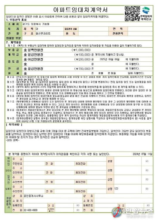 전국연합뉴스 박점규 기자 | 의정부시는 경기도 최초로 주택임대차계약서에 QR코드를 삽입해 부동산거래관리시스템으로 바로 연결되는 디지털 행정서비스를 도입했다고 3일 밝혔다.