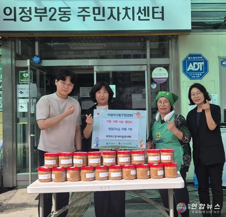 전국연합뉴스 박점규 기자 | 의정부시 의정부2동주민센터는 9월 2일 의정부2동 새마을부녀회가 관내 취약계층을 위한 된장 25통을 전달하며 이웃사랑을 실천했다고 밝혔다.