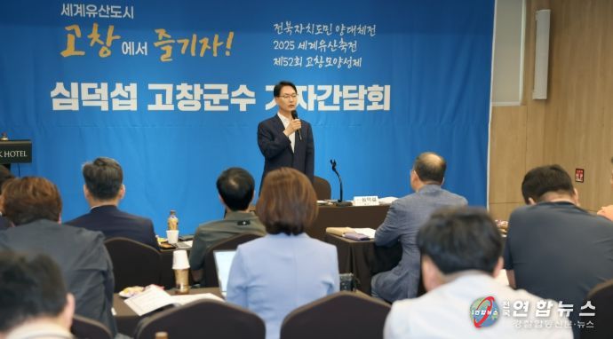 전날(8일) 오후 심덕섭 고창군수는 석정웰파트호텔에서 ‘세계유산도시 고창에서 즐기자’를 주제로 기자간담회를 열었다.