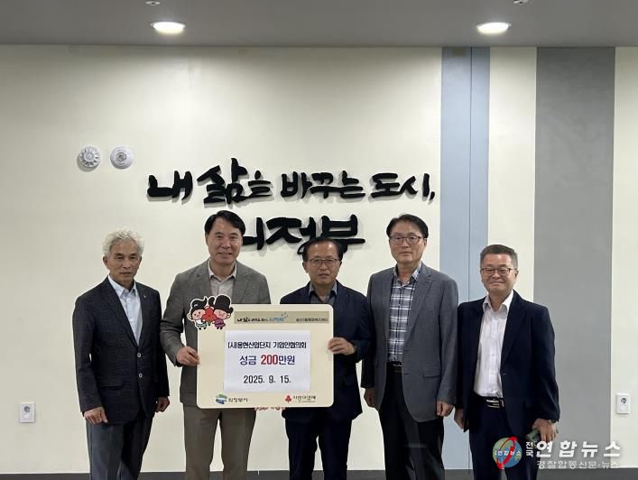 전국연합뉴스 박점규 기자 | 의정부시 송산3동행정복지센터는 9월 15일 용현산업단지 기업인협의회가 관내 저소득층 지원을 위해 성금 200만 원을 기탁했다고 밝혔다.