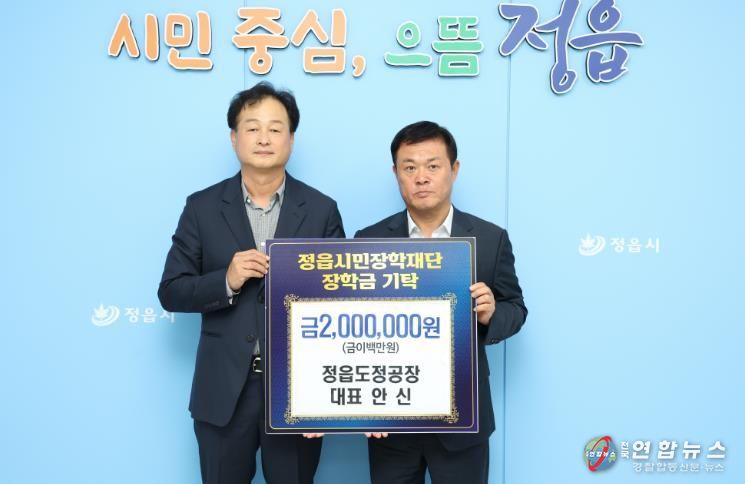 전국연합뉴스 최성용 기자 | 정읍도정공장 안신 대표는 18일 지역의 미래를 이끌 청소년들을 위해 장학금 200만원을 정읍시민장학재단에 기탁했다.