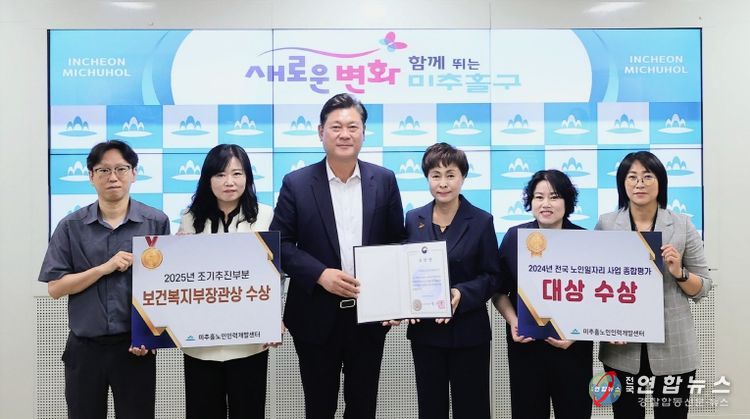 전국연합뉴스 박우배 기자 | 인천 미추홀노인인력개발센터(센터장 김태화)는 지난 22일 웨스턴조선서울에서 열린 ‘2025년 노인 일자리 주간 기념식’에서 보건복지부 장관 표창이자 최고 영예인 ‘대상’을 수상했다.
