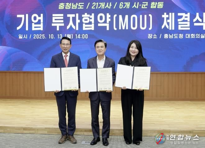 합동 투자협약에는 이완섭 서산시장, 김태흠 충남도지사, 조미리 지에이치내츄럴㈜ 대표 등 6개 시군, 21개 기업 관계자가 참석했다.