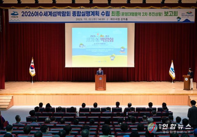 전국연합뉴스 김철환 기자 | 2026여수세계섬박람회조직위원회가 지난 22일 여수문화홀에서'2026여수세계섬박람회 종합실행계획 수립' 최종보고회를 개최했다.