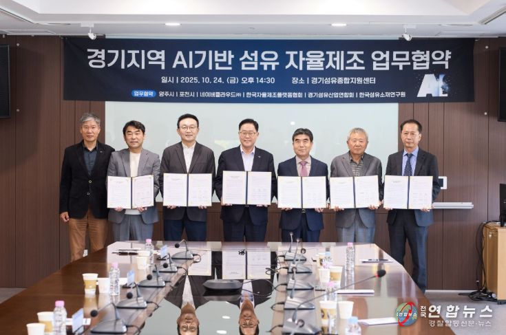 이번 협약은 양주시, 포천시, 한국섬유소재연구원, 네이버클라우드㈜, 경기섬유산업연합회, 한국자율제조플랫폼협회가 참여했으며 경기북부 섬유기업의 AI 인프라 구축, 현장 활용 모델 발굴 등 협업 체계를 마련하는 것이다.