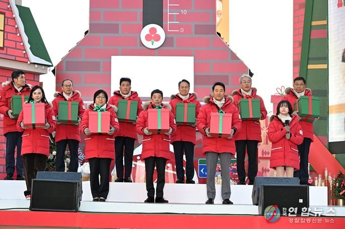 전국연합뉴스 김태연 기자 | 오세훈 서울시장은 1일 오후 2시 35분 광화문광장에서 열린 ‘희망2026 나눔캠페인 출범식’에 참석해 ‘사랑의 온도탑’에 불을 밝히고 모금의 시작을 알렸다.