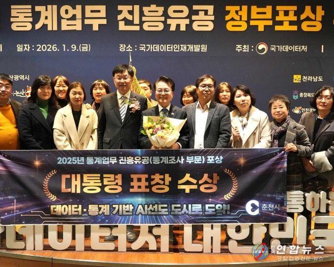전국연합뉴스 김생수 기자 | 춘천시가 9일 2025년 통계업무 유공을 인정받아 강원특별자치도 18개 시군 중 최초로 대통령 표창을 수상했다.