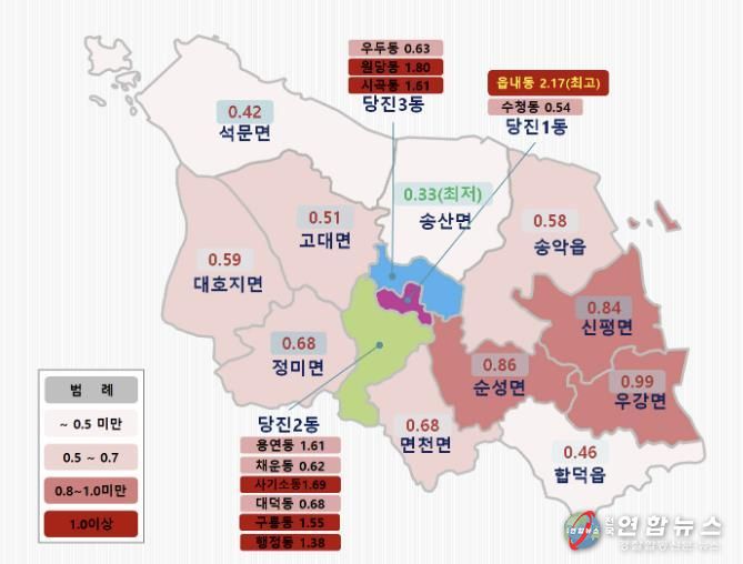 지역별로는 읍내동이 2.17%로 가장 높은 상승률을 기록했으며, 송산면은 0.33%로 가장 낮은 상승률을 보였다. 도심 지역과 상대적으로 개발 여건이 있는 지역은 상승 폭이 컸던 반면, 농촌 지역은 전년과 유사한 수준의 완만한 변동을 나타냈다.