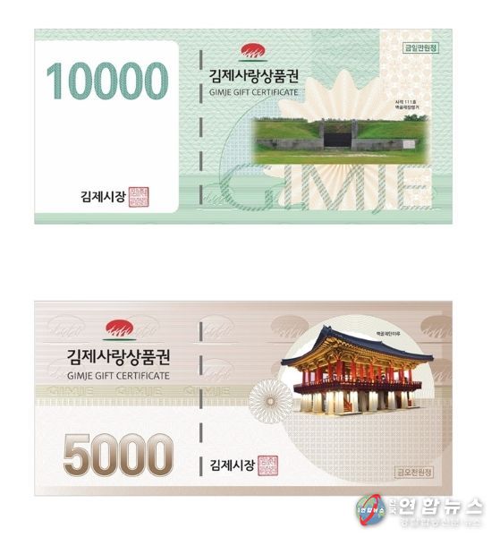 전국연합뉴스 관리자 기자 | 전북 김제시는 2023년 1월 2일부터 판매대행점(농협·전북은행·새마을금고·우체국 등) 38개소에서 김제사랑상품권을 1인당 월 할인구매 한도 100만원(법인 월 할인구매 한도 300만원), 할인율 10% 조건으로 판매한다고 밝혔다.