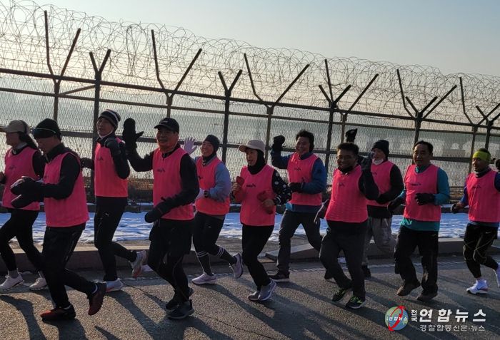 전국연합뉴스 관리자 기자 | 강화군 관내 스포츠동호회 강화사랑마라톤 클럽이 2023년 첫날인 지난 1일 연미정에서 갑곳돈대까지 약 10km에 걸쳐 새해 힘찬 출발을 다짐하는 동반주 훈련을 실시했다.
