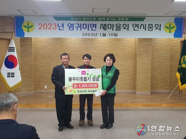 전국연합뉴스 관리자 기자 | 홍천군 영귀미면 새마을회는 1월 10일 영귀미면행정복지센터를 방문해 어려운 이웃을 위한 성금 100만원을 기탁했다.