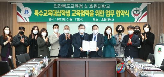 전라북도교육청과 호원대학교는 11일 오후 2시30분 호원대 대회의실에서 ‘특수교육대상학생 교육협력 업무협약’을 체결했다고 밝혔다.
