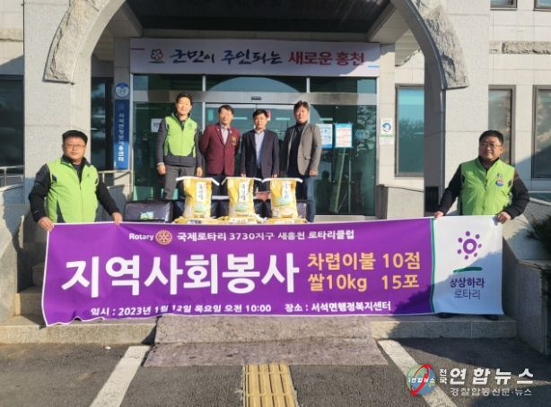 전국연합뉴스 관리자 기자 | 국제로타리 3730지구 새홍천로타리클럽은 1월 12일 서석면행정복지센터를 방문해 어려운 이웃을 위한 후원물품으로 차렵이불 10점, 쌀(10kg) 15포를 전달했다.