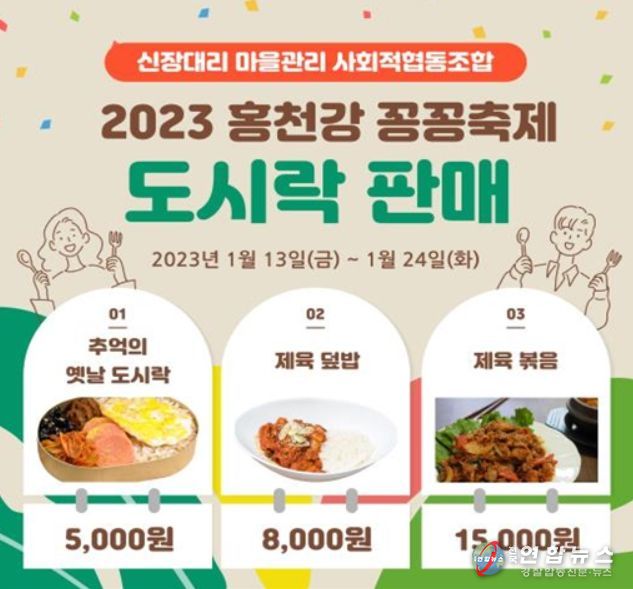 전국연합뉴스 관리자 기자 | 2023년 01월 13일 금요일부터 열리는 홍천강 꽁꽁축제에 홍천군 도시재생으로 출범한 신장대리 마을관리 사회적협동조합과 희망여행in플랫폼 협동조합(준)이 참가한다.