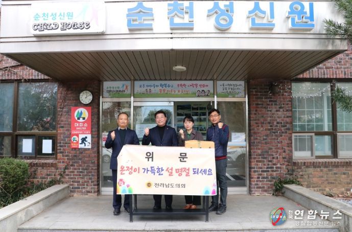 전국연합뉴스 관리자 기자 | 전라남도의회 신민호 기획행정위원장(더불어민주당, 순천6)은 12일 민족 고유의 명절인 설을 앞두고 순천시에 소재한 ‘성신원’을 직접 방문해 종사자들을 격려하며 시설에 필요한 식료품 등 위문품을 전달했다.