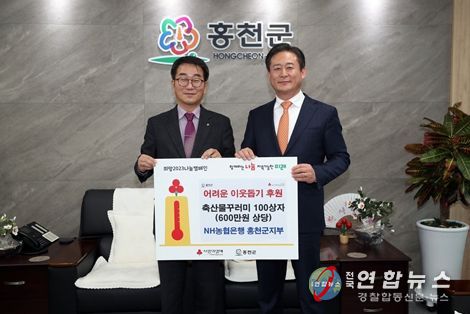 전국연합뉴스 관리자 기자 | NH농협은행 홍천군지부는 1월 13일 홍천군청을 방문, ‘희망2023나눔캠페인’에 동참하여 600만원 상당의 축산물꾸러미 100상자를 기탁했다.