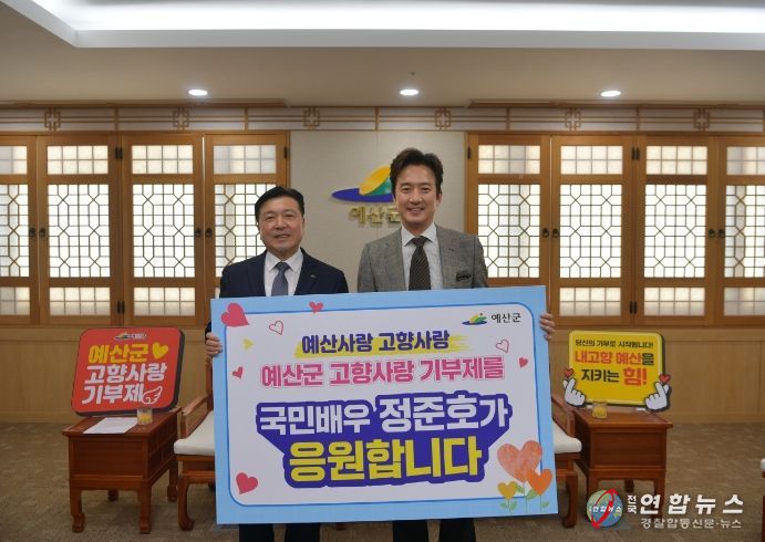 전국연합뉴스 김용태 기자 | 예산군 출신 국민배우 정준호 씨가 지난 23일 예산군을 직접 방문해 고향사랑 기부금을 기탁하고, 예산군 고향사랑기부제를 응원했다.