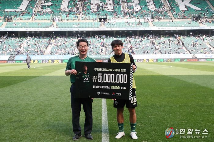 권익현 군수는 "고향이 아닌 부안에 기부를 결심하는 것이 쉬운 결정이 아니다"라며 "전북의 간판 스타인 최철순 선수가 부안군에 기부해 주셔서 감사하다. 부안 발전을 위해 소중히 사용하겠다.“라고 밝혔다.