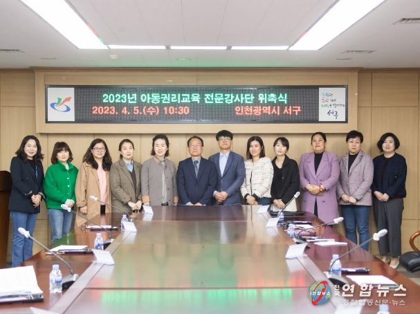 전국연합뉴스 김광원 기자 | 인천시 서구가 5일 아동친화도시를 위한 ‘아동권리교육 전문강사단’ 위촉식을 열고 전문강사 13명을 위촉했다고 밝혔다.