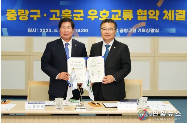 전국연합뉴스 김태연 기자 | 서울특별시 중랑구가 전라남도 고흥군이 15일 중랑구청 기획상황실에서 상생발전을 위한 우호교류 협약을 체결했다.