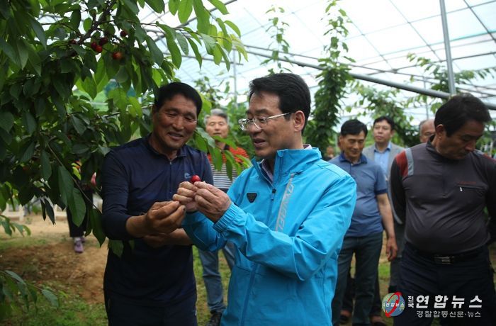 강 군수는 체리 생산 농가인 ‘생각대로’ 농장(도암면 옥전마을)을 찾아, 애로사항을 청취하며 소통하는 시간을 가졌다.