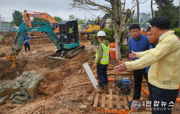 전국연합뉴스 김철환 기자 | 전라남도 나주시가 21일 삼영지구 우수저류시설 설치 공사 현장 인근 상수관로 파손으로 단수가 발생해 신속한 대응 조치에 나섰다.