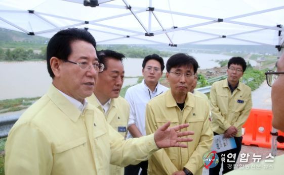 김영록 지사는 현장에서 2020년 집중호우로 유실된 제방을 살피고 “제방 유실로 피해가 큰 주민에게 심심한 위로의 말씀을 드린다”며 “같은 일이 발생하지 않도록 예찰활동·전직원 비상근무 등 선제적 대응을 바란다”고 말했다.
