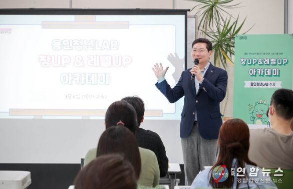 전국연합뉴스 이명후 기자 | 이상일 용인특례시장이 4일 용인청년LAB 수지에서 열린 ‘창업(UP) & 레벨업(UP) 아카데미’ 개강식에서 수강생들을 격려했다. 개강식에는 창업을 희망하는 용인 청년 20여 명이 참석했다.