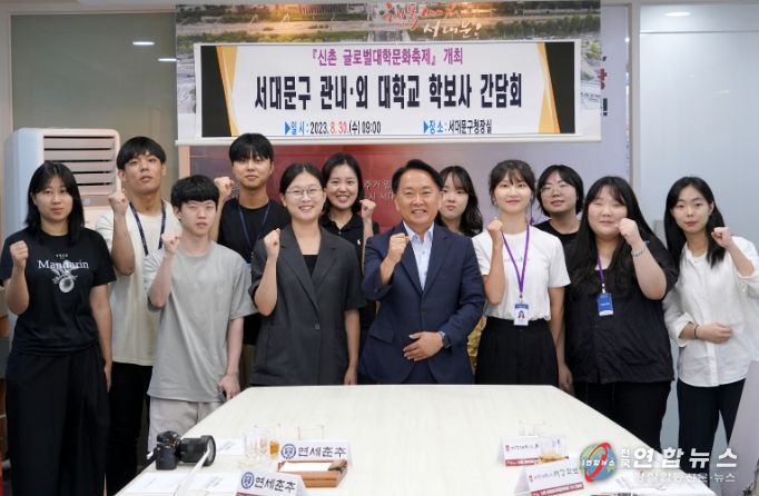 전국연합뉴스 김태연 기자 | 이성헌 서대문구청장이 30일 오전 구청 회의실에서 올해 처음 개최될 ‘신촌글로벌대학문화축제’를 알리기 위해 주요 대학 학보사 기자들과 간담회를 가졌다.