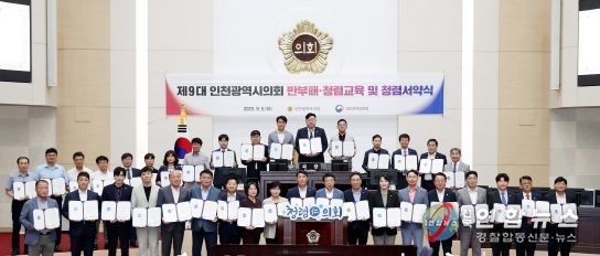 전국연합뉴스 박충곤 기자 | 인천광역시의회 의원들이 투명하고 공정한 업무 수행과 청렴한 의회상 구현에 앞장설 것을 다짐했다.